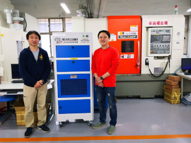 經過設備商的說明,在教室內設置工業用空氣淨化機,大幅減少CNC車床產出的油氣、粉塵汙染,不僅能照護到學生與老師的健康外,也能保護數位資訊、電腦設備,避免遭受車床油霧汙染,導致高損壞率,延長電子設備的使用年限。
